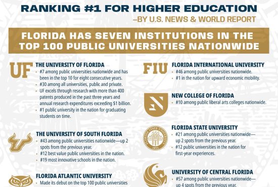Florida ranks #1 in Higher Education 10 years in a row by U.S. News & World Report!