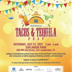 Indulge in mouthwatering tacos from the areas best food trucks and restaurants all while enjoying refreshing cocktails and lively music. Saturday 7/22 | 2-6 pm | Esplanade Park in Downtown Fort Lauderdale. For more information, click here.